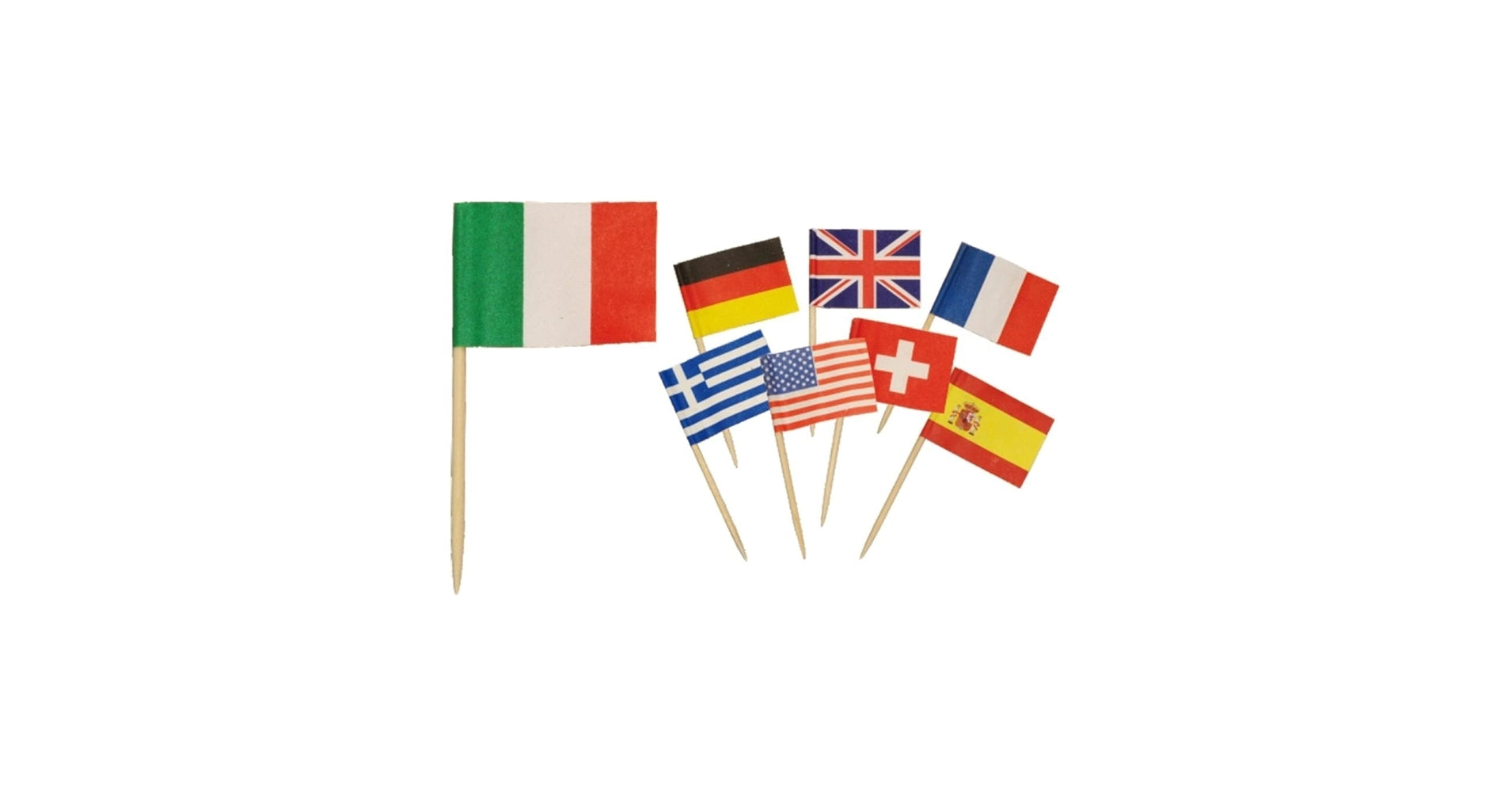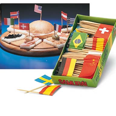 Decorazione: Bandierine in carta assortite, posizionate sulla sommità dello stuzzicadenti