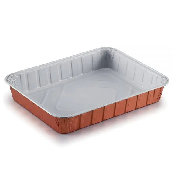 L’alluminio alimentare garantisce resistenza, stabilità e ottima conduzione termica, mentre la laccatura interna assicura protezione contro oli, salse e grassi, mantenendo intatti sapore e qualità dei cibi.
